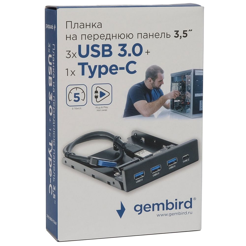 Адаптер Gembird Планка USB 3.0 на переднюю панель в отсек 3.5" 3xUSB-A 3.0 + 1xType-C. Бренд: Gembird. Артикул: FP3.5-USB3-3A1C. Гарантия: 12 мес.