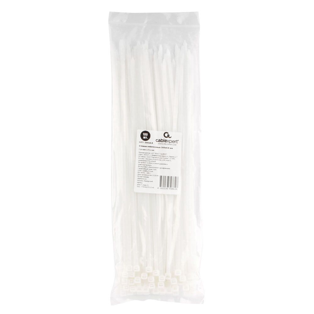 Стяжки Cablexpert NYT-300x4.8, пластиковые, 300 мм х 4.8 мм, белые (100 шт.)