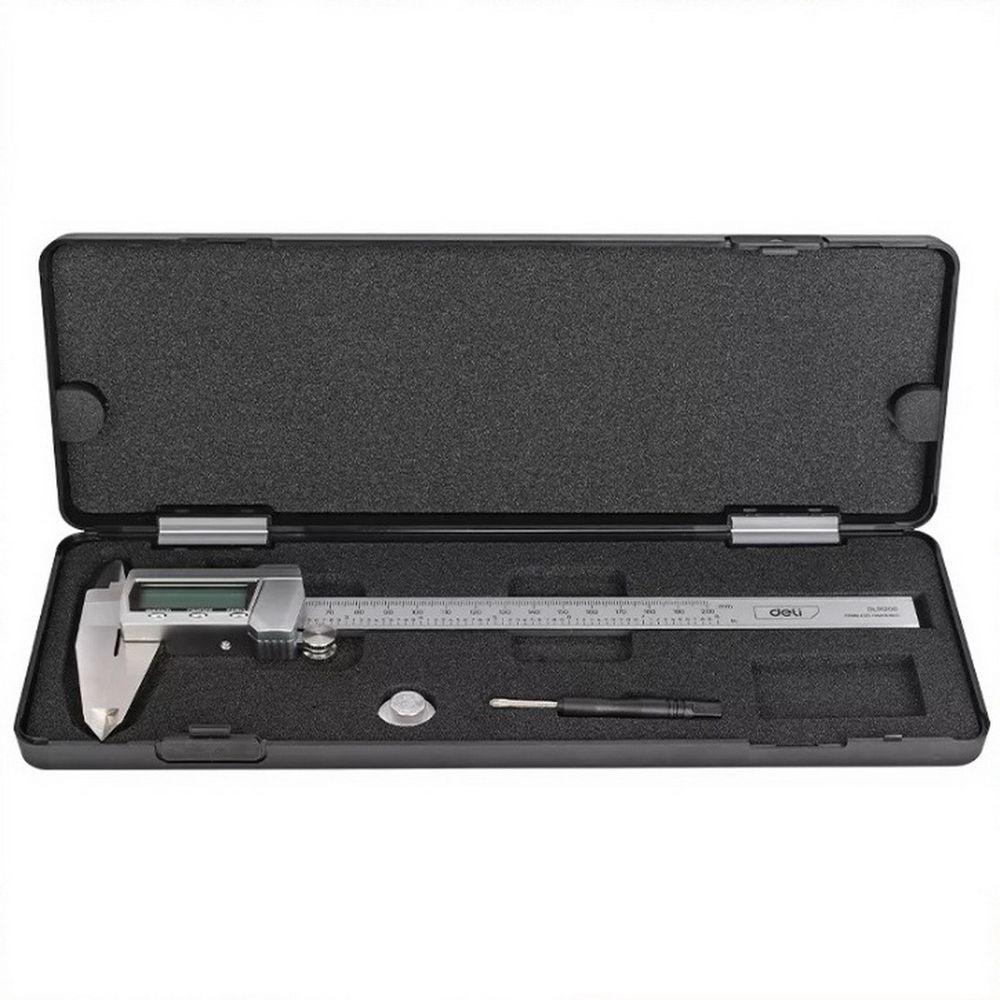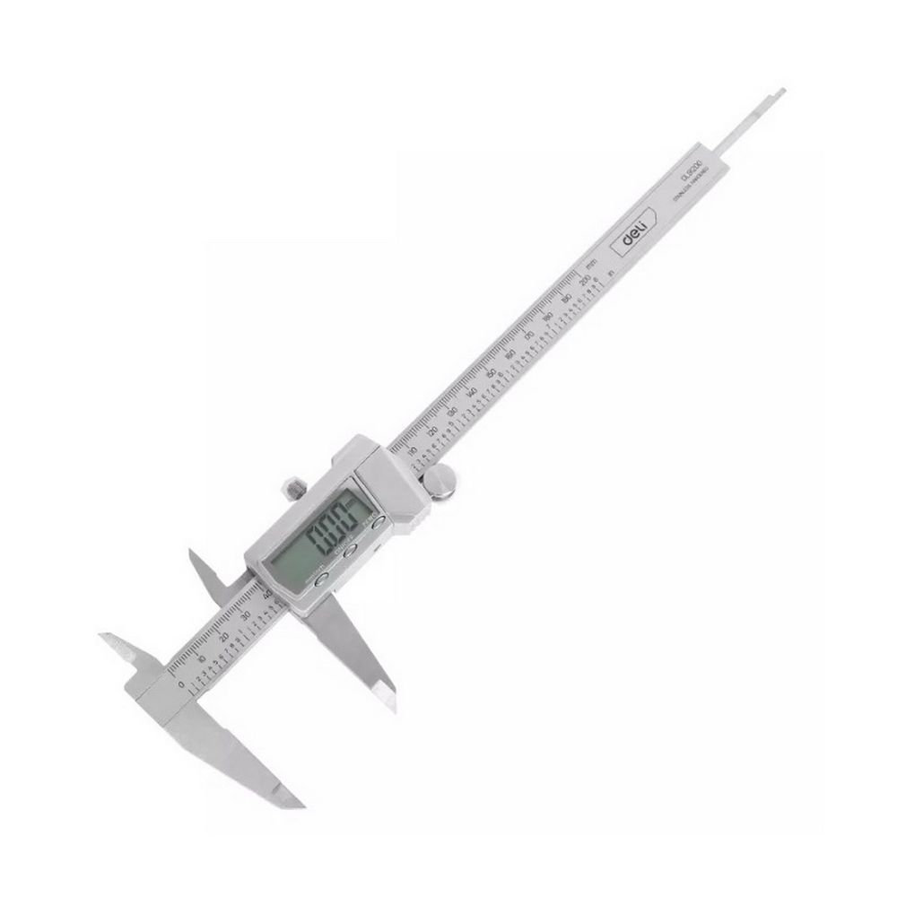 Электронный штангенциркуль Deli DL91200 200мм, метрическая/дюймовая конвертация, нержавеющая сталь, 3 кнопочное управление, светодиодный дисплей, 1,5В SR44.. Бренд: Deli. Артикул: DL91200. Гарантия: 1 мес.