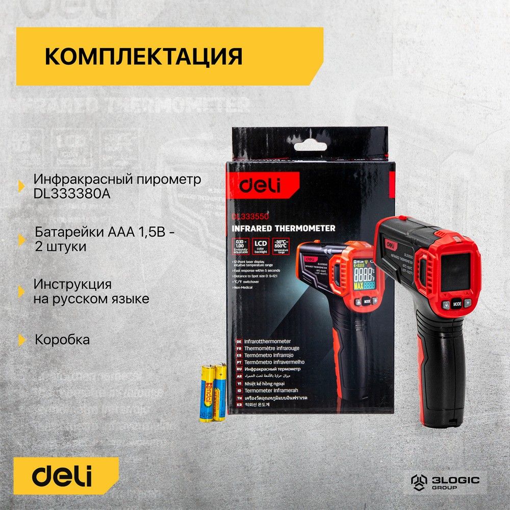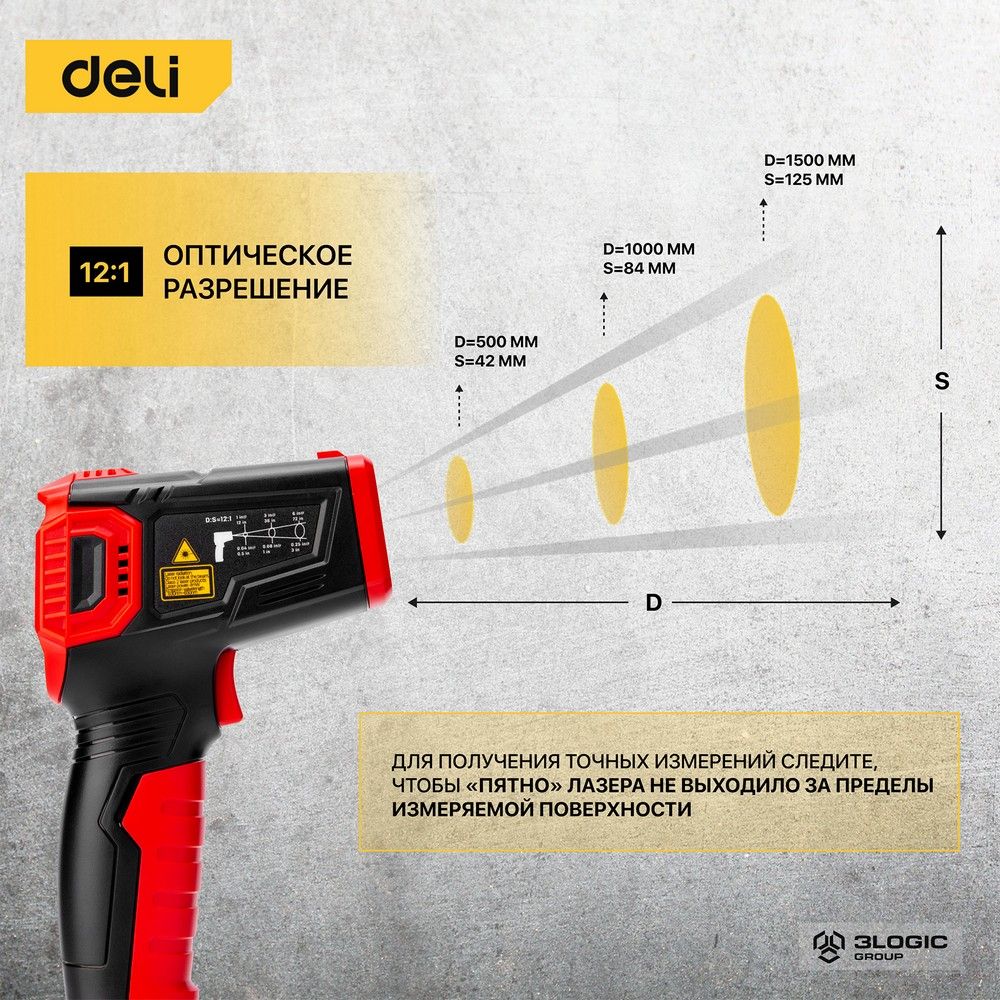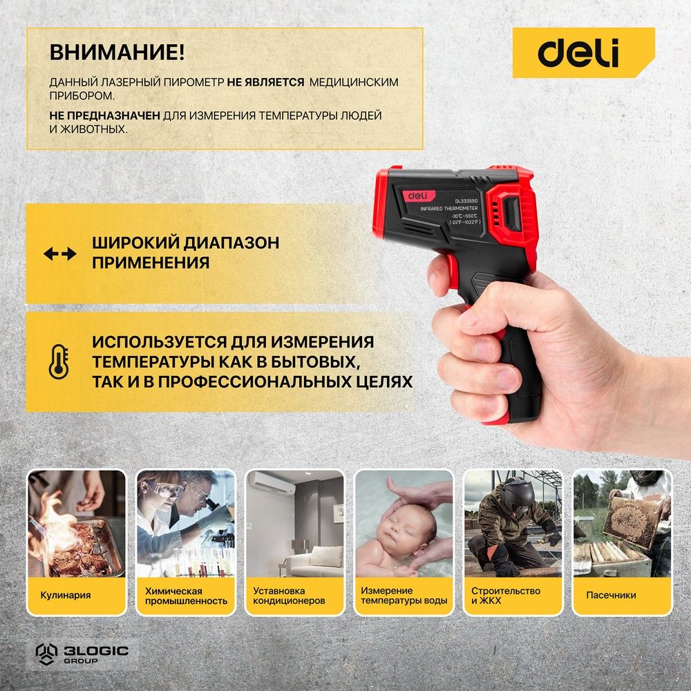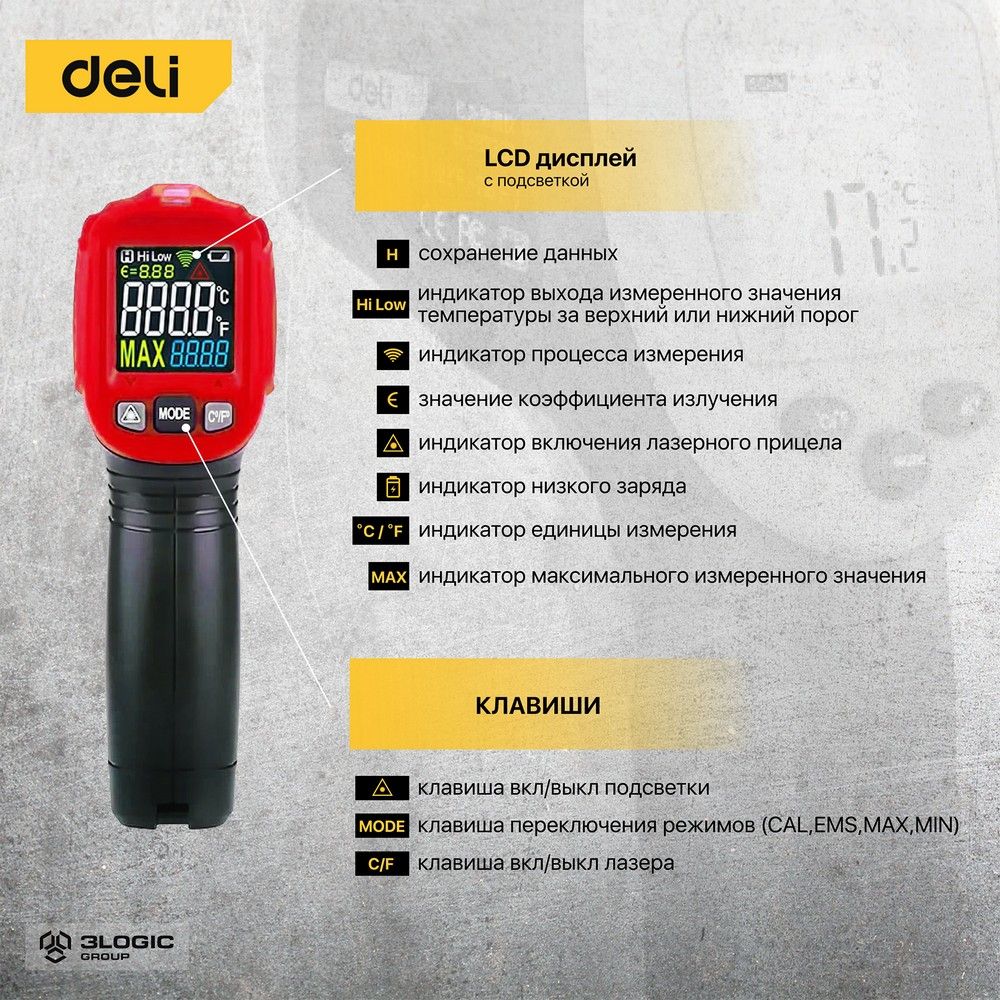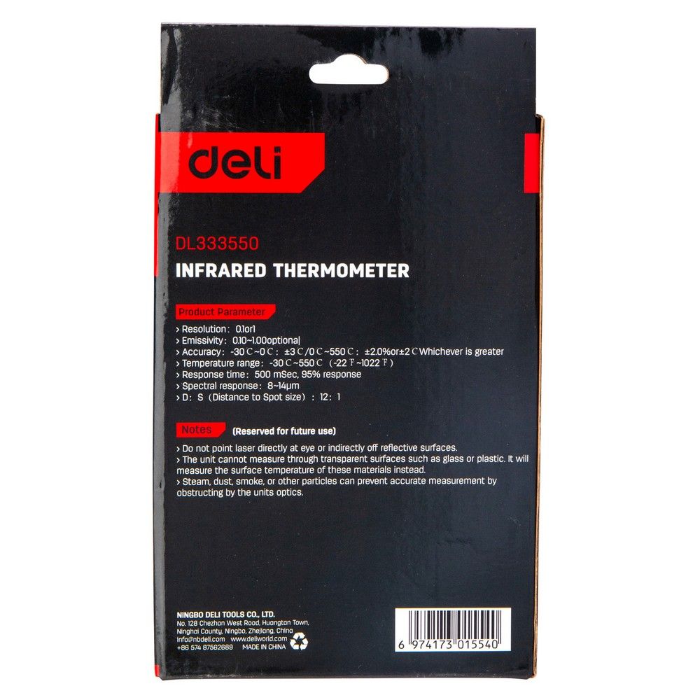 Инфракрасный пирометр (термометр) с цветным дисплеем Deli DL333550 -40…600°C. Бренд: Deli. Артикул: DL333550. Гарантия: 12 мес.