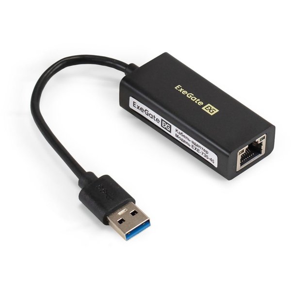 Кабель-адаптер ExeGate EXE-735U3-45 (USB3.0 --> 1xRJ45 UTP 1000Mbps, Axis Chipset AX88179). Бренд: Exegate. Артикул: EX283722RUS. Гарантия: 12 мес.