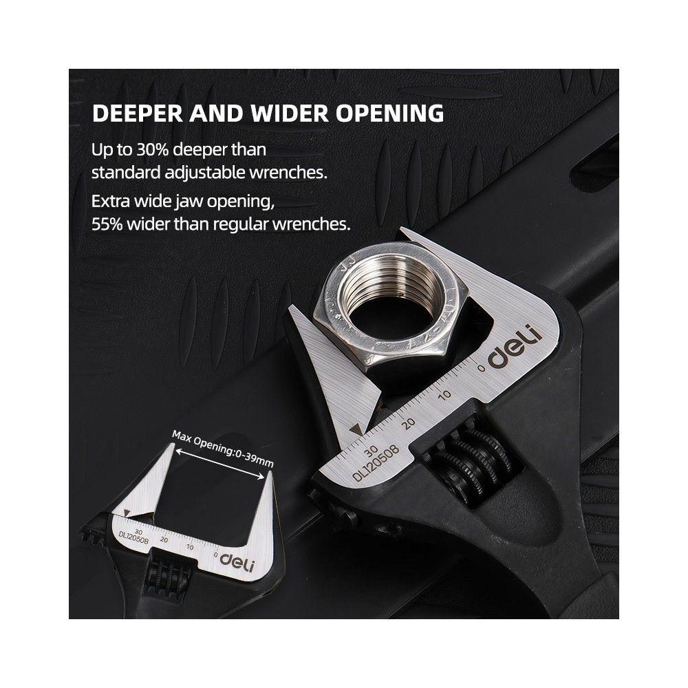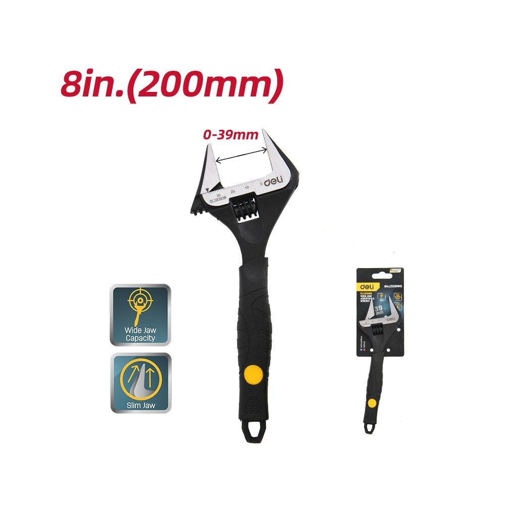 Ключ разводной с тонкими губками и увеличенным зевом Deli DL120508 200мм, диапазон захвата 0-39мм. Бренд: Deli. Артикул: DL120508. Гарантия: 1 мес.