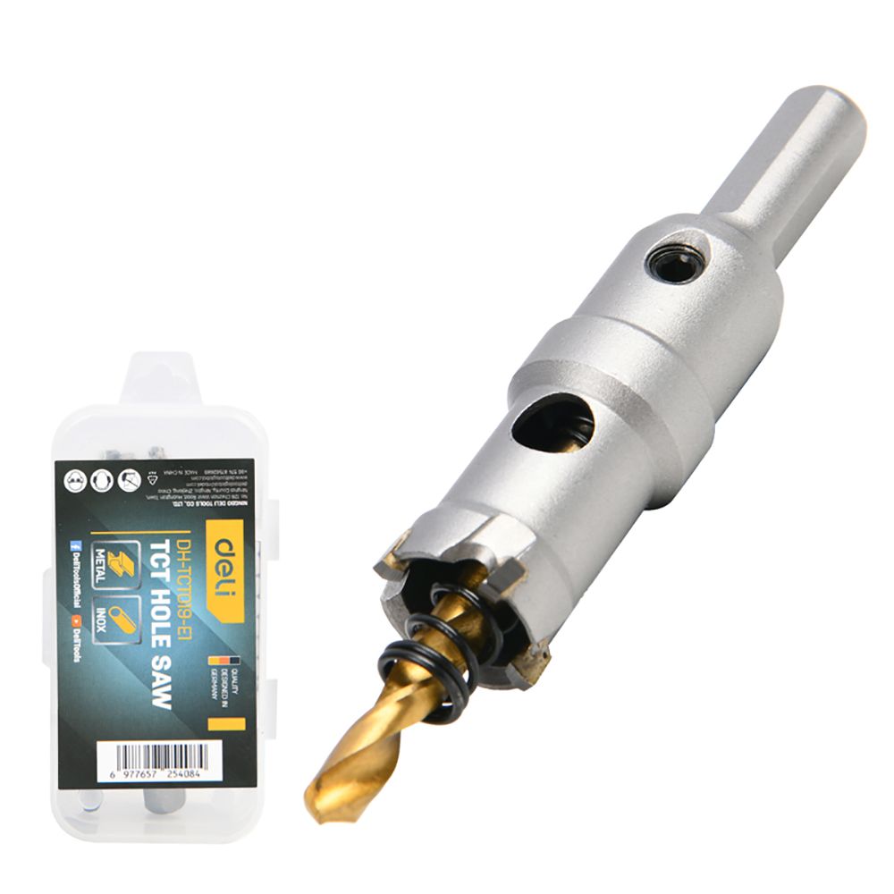 Коронка по металлу твердосплавная с центрирующим сверлом Deli DH-TCT019-E1 диаметр 19мм, шестигранный хвостовик. Бренд: Deli. Артикул: DH-TCT019-E1.