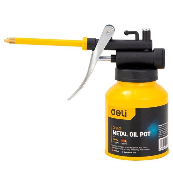 Маслёнка Deli DL2401 — это удобный и практичный инструмент для заправки и смазки различных механизмов. Она изготовлена из прочной стали, что обеспечивает долговечность и надёжность в использовании.