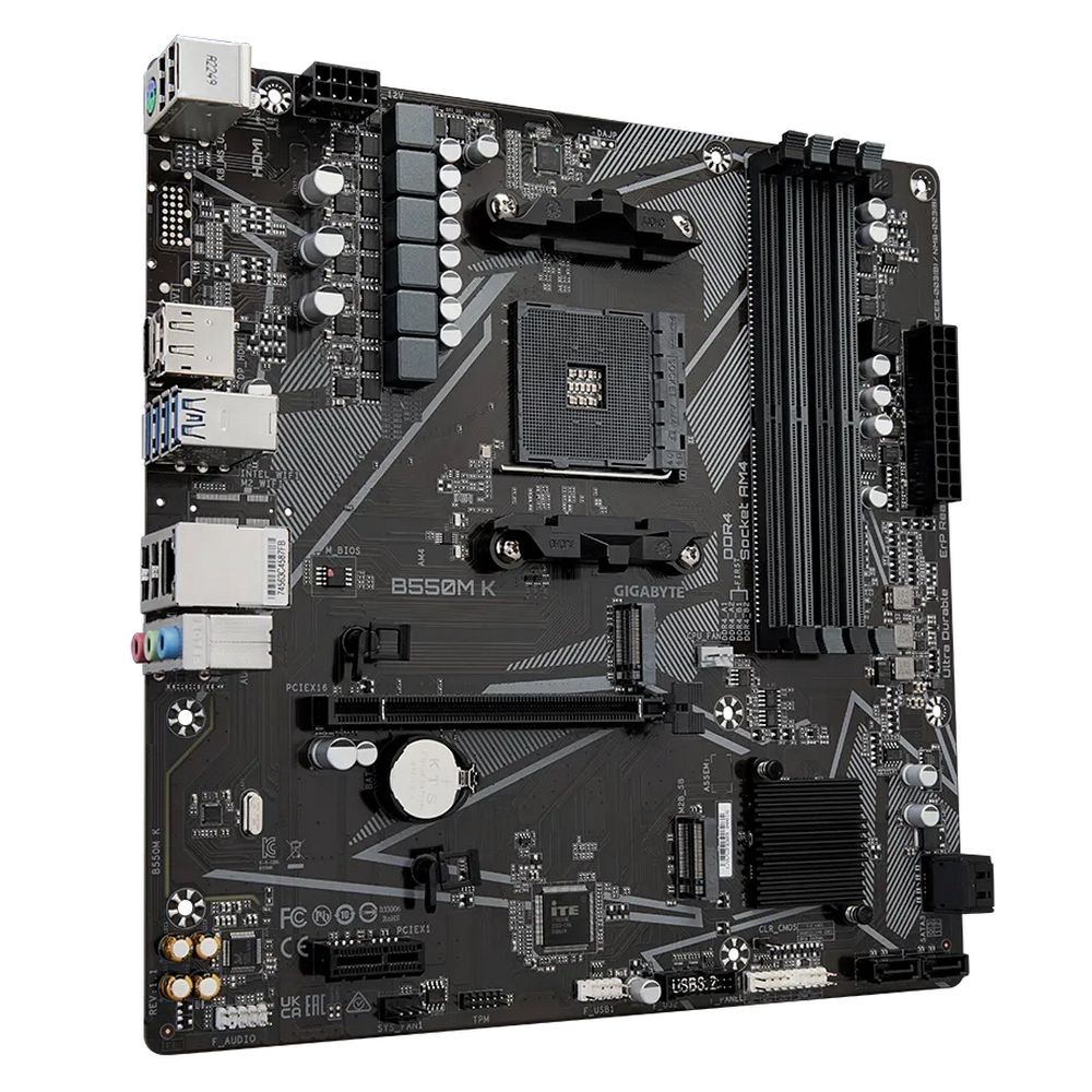 Материнская плата Gigabyte B550M K — это надёжное и функциональное решение для сборки компьютера. Она поддерживает процессоры на сокете AM4 и чипсет AMD B550, что обеспечивает широкие возможности для создания мощной системы.