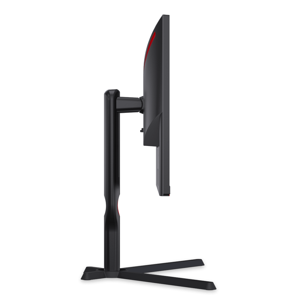 Дизайн монитора выполнен в чёрно-красных тонах, что придаёт ему стильный и современный вид. Подставка позволяет регулировать наклон и высоту экрана.