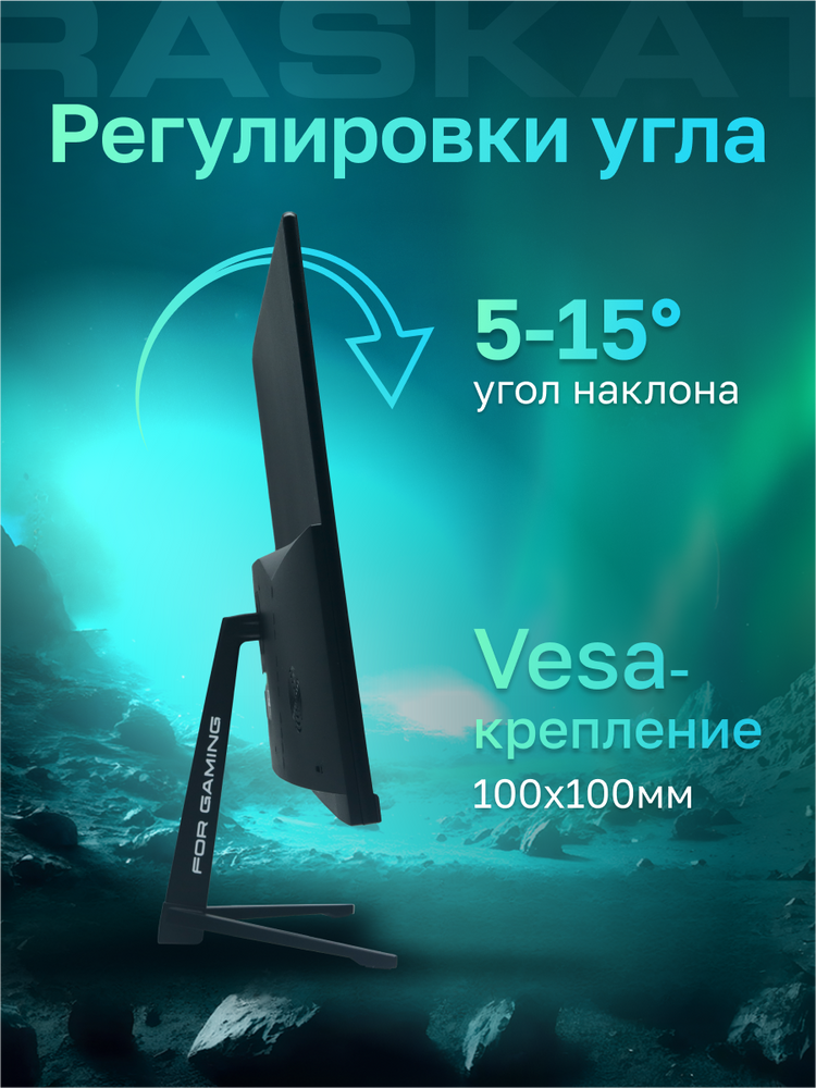 Стильный чёрный корпус монитора гармонично впишется в любой интерьер. Raskat I27F16D — отличный выбор для работы, игр и просмотра фильмов.