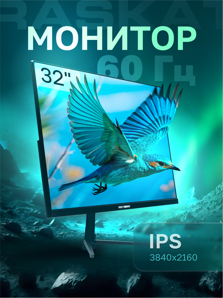 Погрузитесь в мир ярких и чётких изображений с монитором Raskat 32' I32U6D! Благодаря разрешению 3840×2160 (4K UHD) и IPS-матрице вы получите насыщенную картинку с реалистичной цветопередачей.