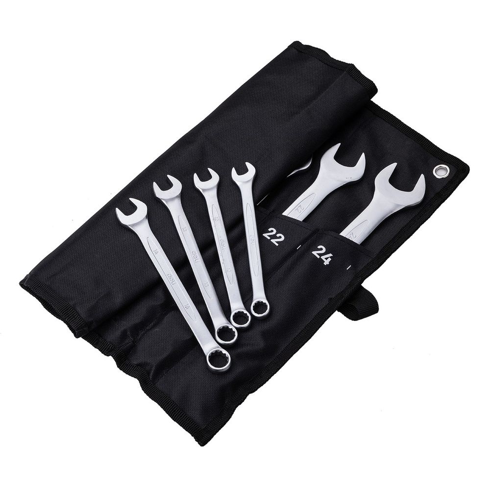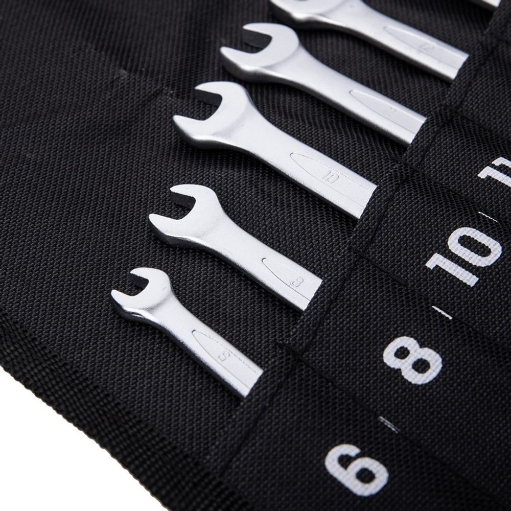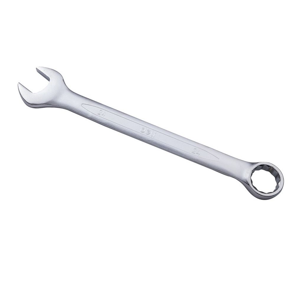 Набор комбинированных гаечных ключей от бренда Deli включает в себя 12 инструментов разных размеров: 6, 8, 10, 11, 12, 13, 14, 15, 17, 19, 22 и 24 мм. Это позволяет использовать ключи для работы с различными крепежами.