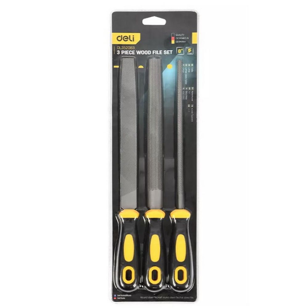ОсобенностиКомплект из трех напильников по дереву - двухсторонний плоский, двухсторонний плоский/закругленный, круглый |