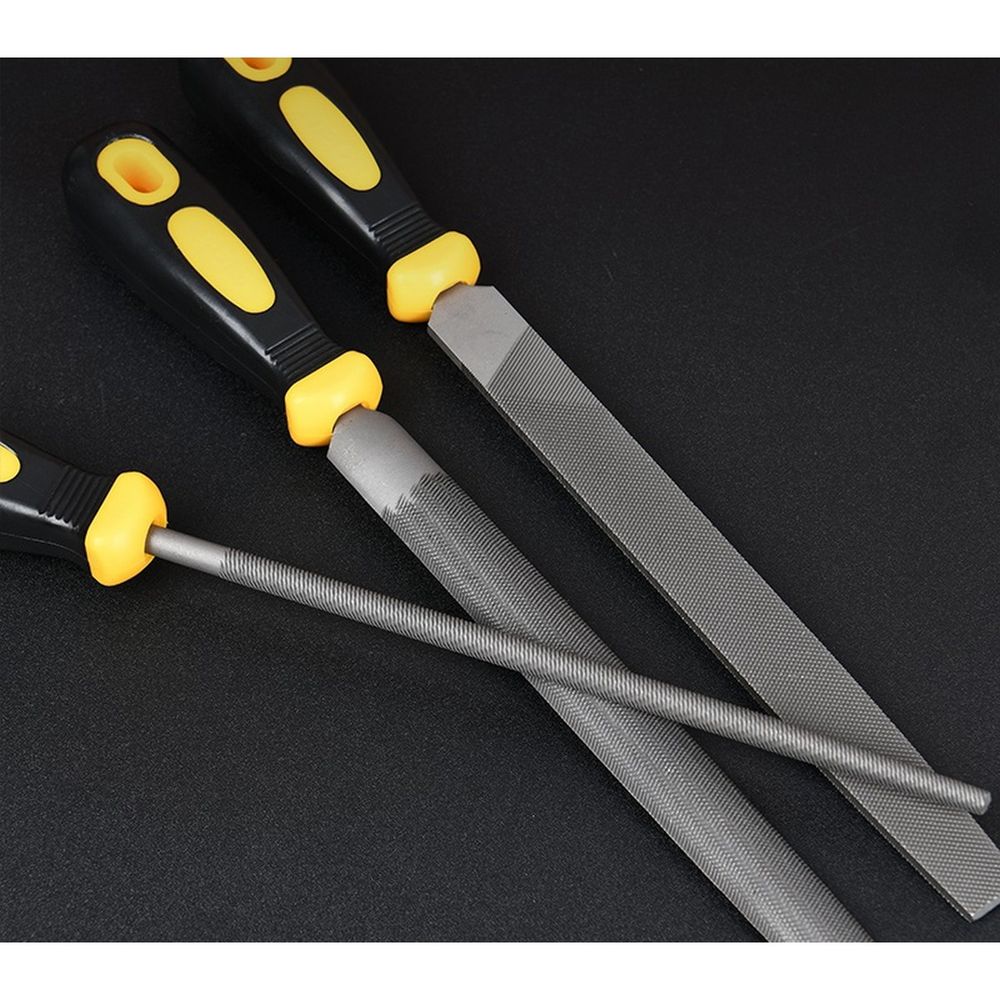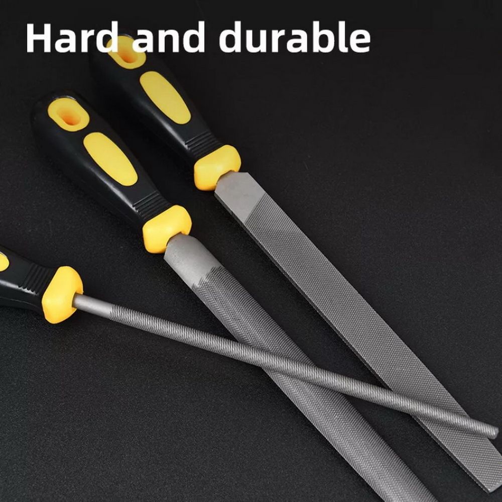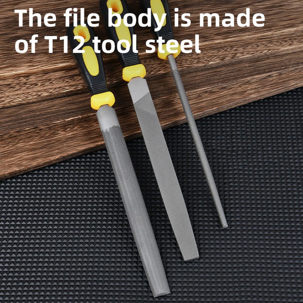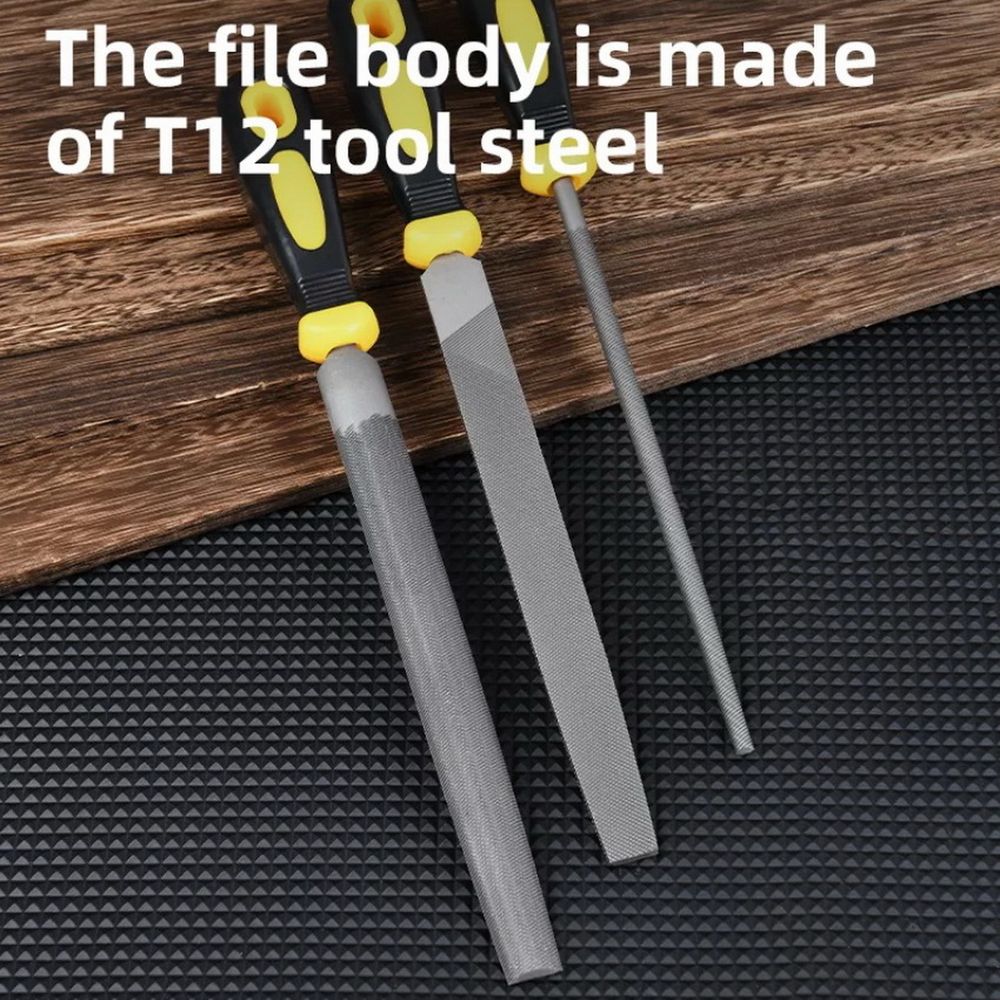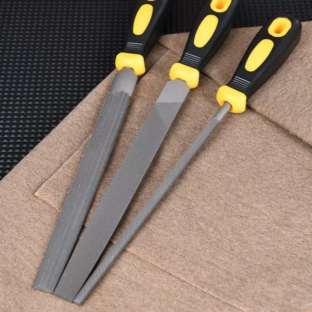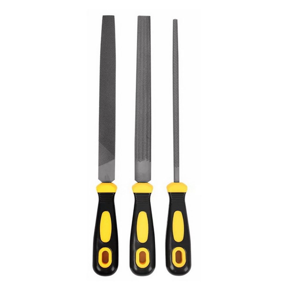 Набор из трёх напильников с обрезиненными рукоятками — незаменимый инструмент для обработки различных поверхностей и деталей. Напильники изготовлены из высококачественной инструментальной стали T12, что обеспечивает прочность и долговечность.