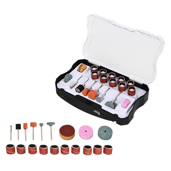 Другая оснастка в наборешлифовальные камни 4 шт., наждачная бумага 20 шт., шлифовальные кольца 10 шт., шлифовальные круги 4 шт. |