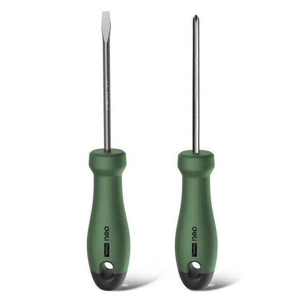 Набор отвёрток Deli HT1002L из серии Home Series Green состоит из двух предметов: SL5x100 и PH1x100.
