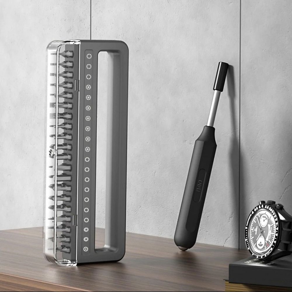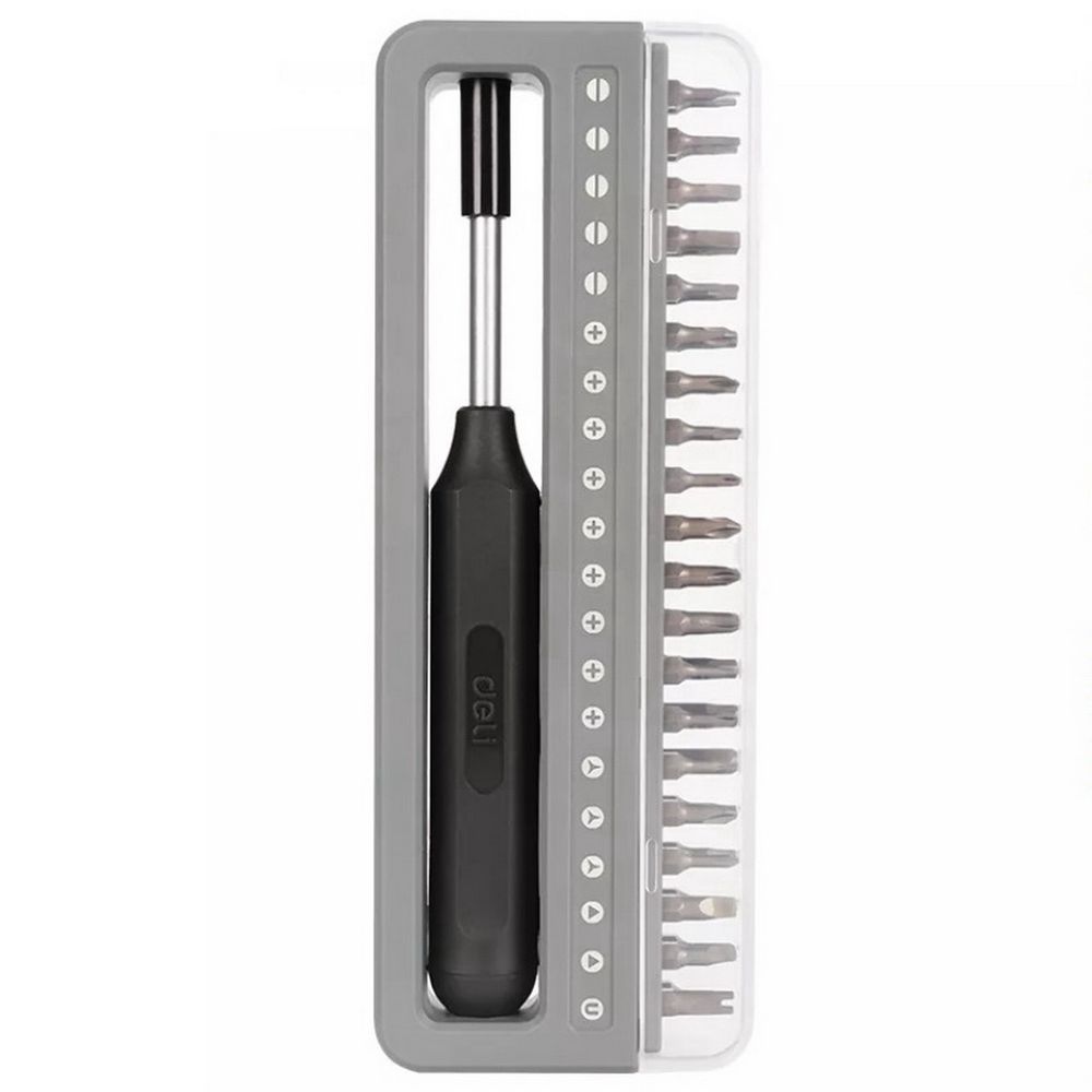 Набор Deli DL241041 состоит из отвёртки и 40 бит, изготовленных из стали S2 и Cr-V. Он предназначен для точных работ с различными видами крепежа.