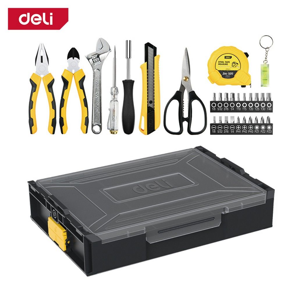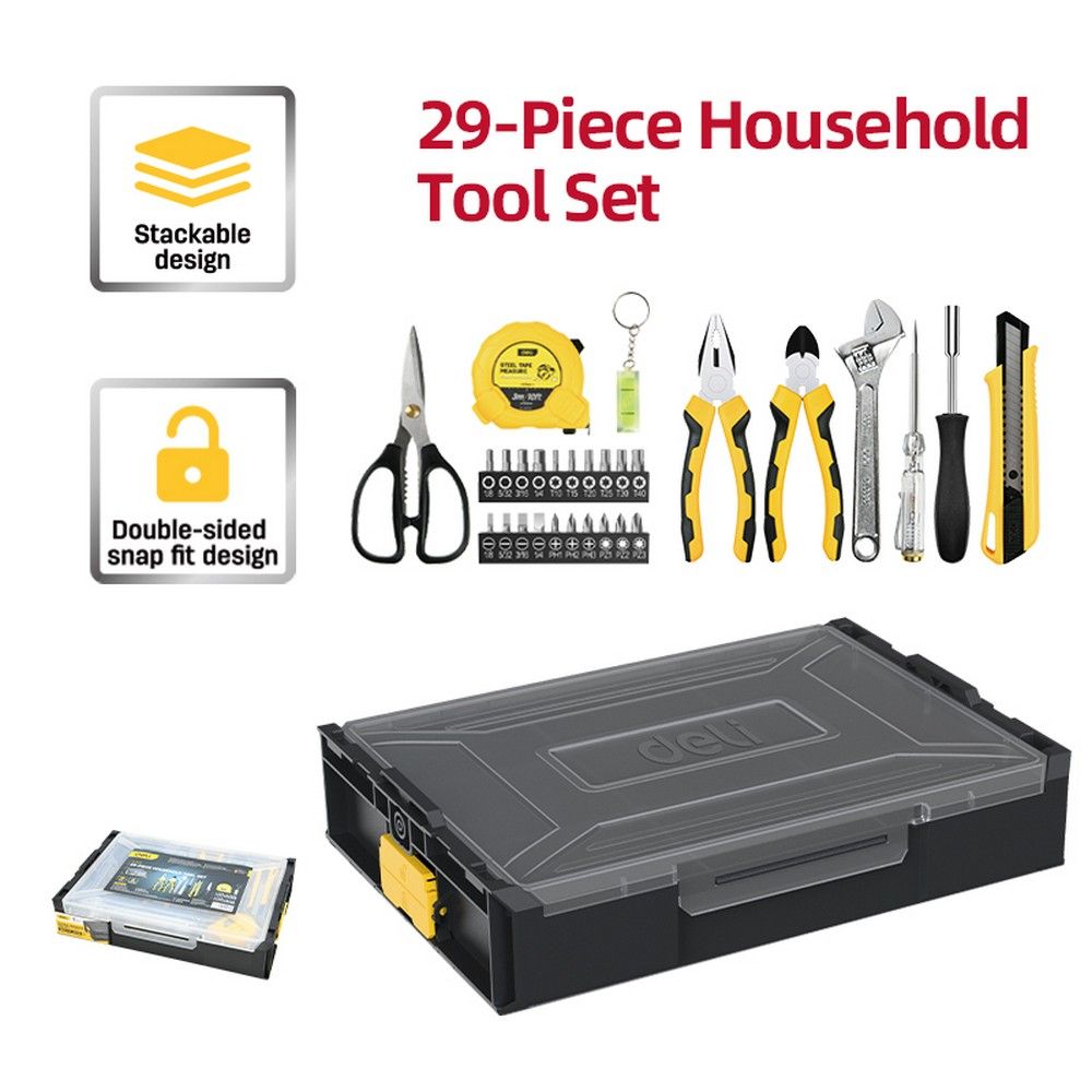 Набор ручного инструмента 29 предметов Deli DL1229 штабелируемый пластиковый ящик. Бренд: Deli. Артикул: DL1229. Гарантия: 1 мес.