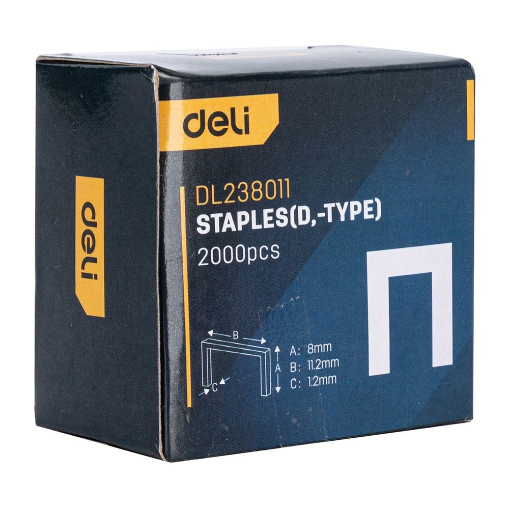 Набор скоб Deli DL238011 предназначен для использования с различными моделями степлеров, обеспечивая надёжное крепление и фиксацию материалов. Скобы имеют размер 8 х 11,2 х 1,2 мм и поставляются в упаковке по 2000 штук.