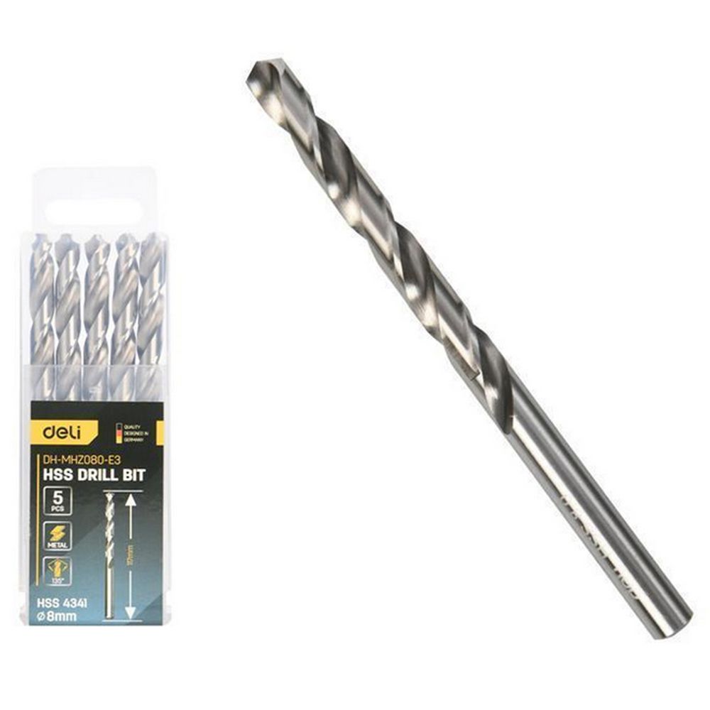 Набор сверл по металлу (8мм, 5 шт) Deli DH-MHZ080-E3 сталь HSS 4341, угол заточки 135 град, пласт. кейс. Бренд: Deli. Артикул: DH-MHZ080-E3.