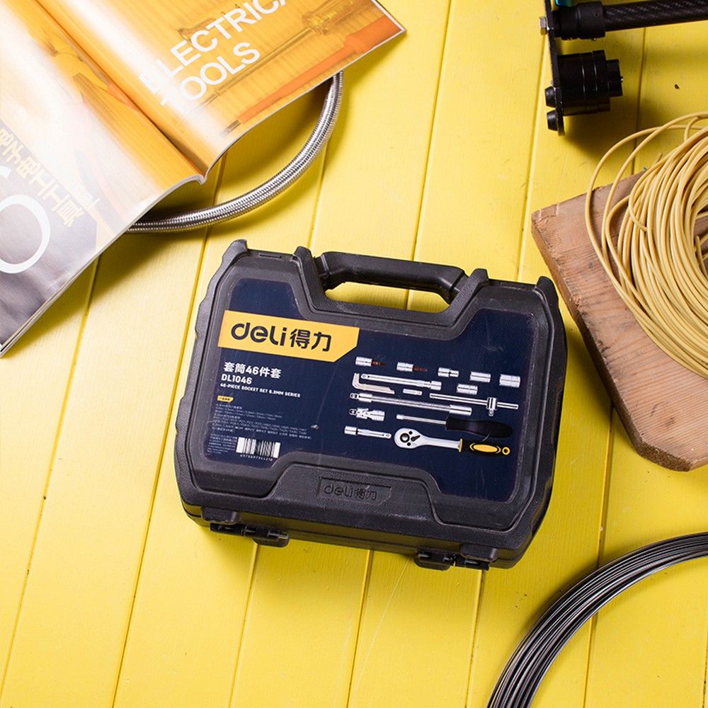Набор торцевых головок и ключей Deli DL1046, 46 шт., 1/4»