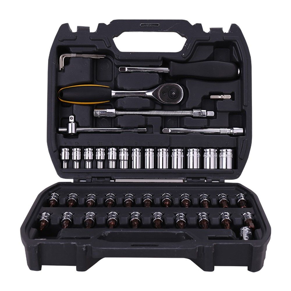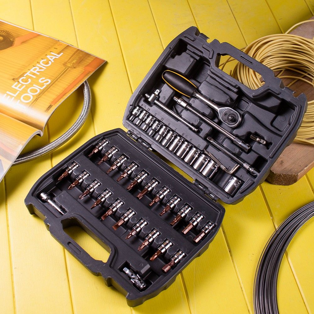 Набор инструментов Deli включает в себя торцевые головки и ключи, которые станут незаменимыми помощниками при ремонте и обслуживании различных устройств.