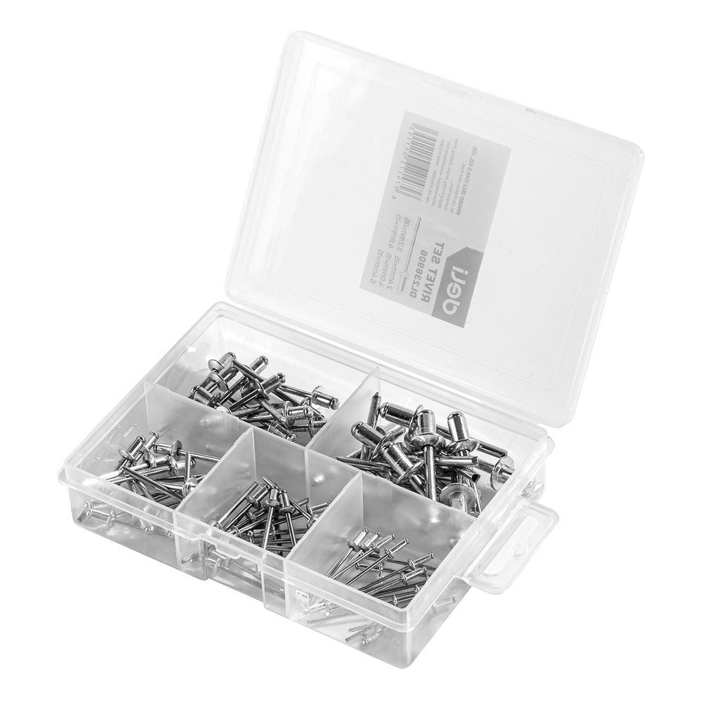 Заклёпки предназначены для создания надёжного соединения различных материалов. Они широко используются в строительстве, ремонте, производстве и других областях деятельности. Набор заклёпок Deli станет незаменимым помощником для профессионалов и любителей, занимающихся ремонтом и сборкой конструкций.