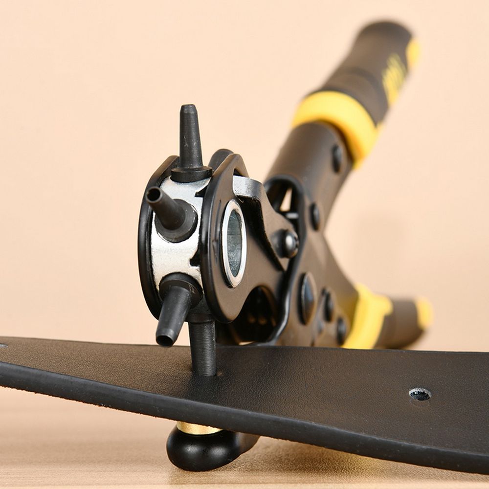 Револьверный дырокол для кожи 6-в-1 Deli DL1919A — это незаменимый инструмент для тех, кто работает с кожей. Он позволяет быстро и точно создавать отверстия различного диаметра, что значительно ускоряет процесс работы и повышает её качество.