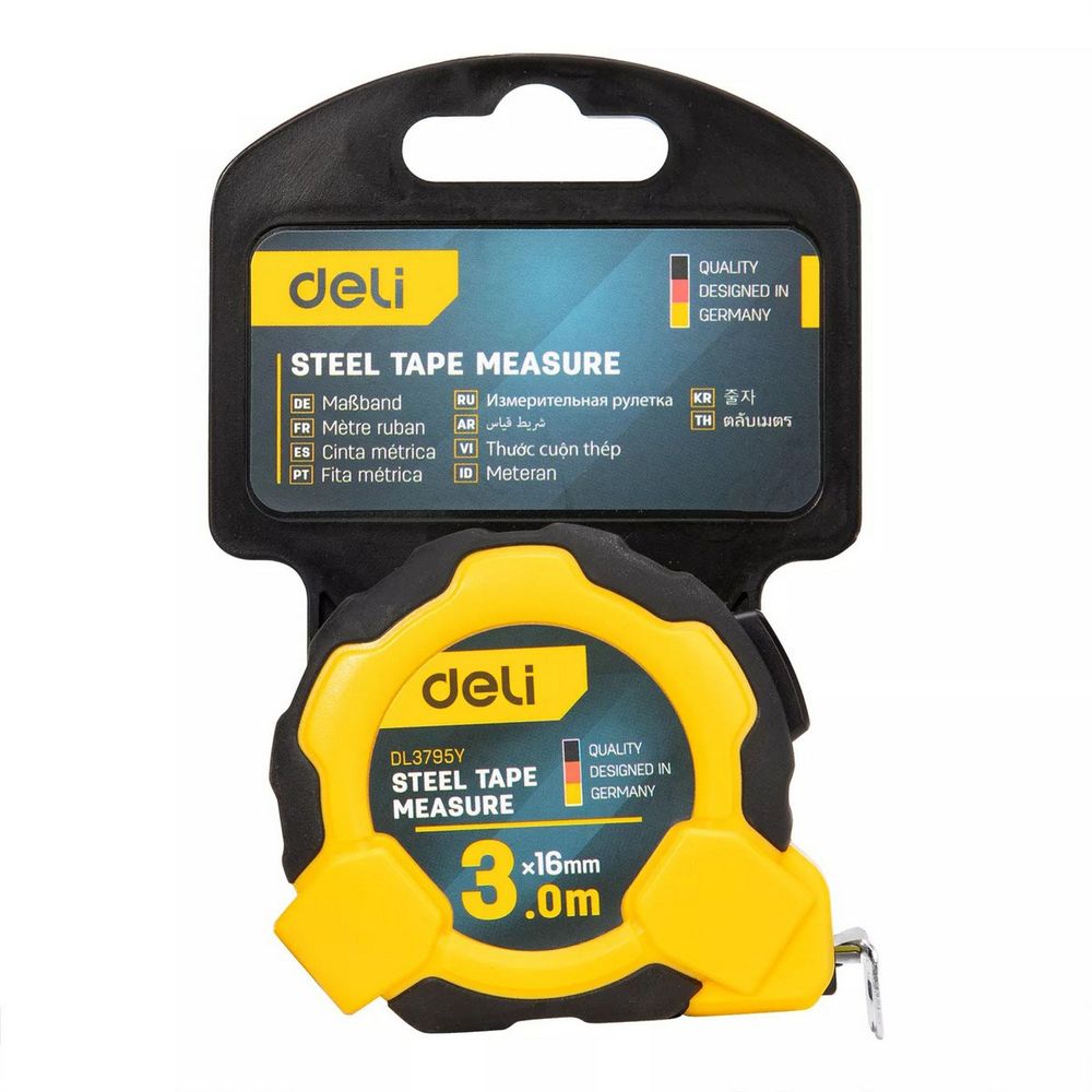 Рулетка Deli DL3795 3м*16мм, Автостоп, ударопрочный корпус, метрическая. Бренд: Deli. Артикул: DL3795. Гарантия: 1 мес.
