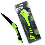 Складная конструкция обеспечивает удобство хранения и транспортировки инструмента. Благодаря обрезиненной ручке пила не скользит в руке, обеспечивая комфорт и безопасность во время работы. Шлифовка зубов с трёх сторон и двухрядное распределение кромок обеспечивают точность и эффективность резки.