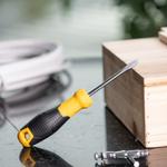 Двухкомпонентная ручка отвертки обеспечивает удобный хват и предотвращает скольжение во время работы. Хромированное покрытие защищает инструмент от коррозии и придаёт ему эстетичный вид.