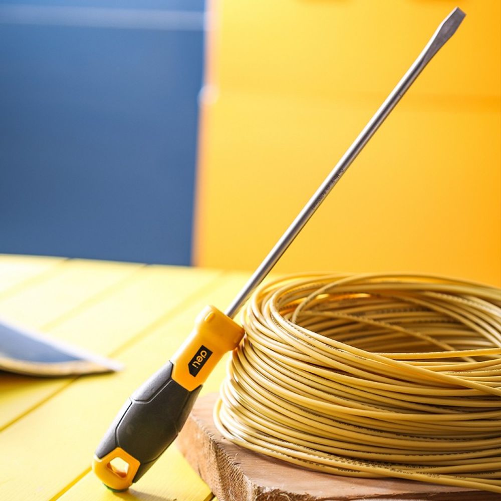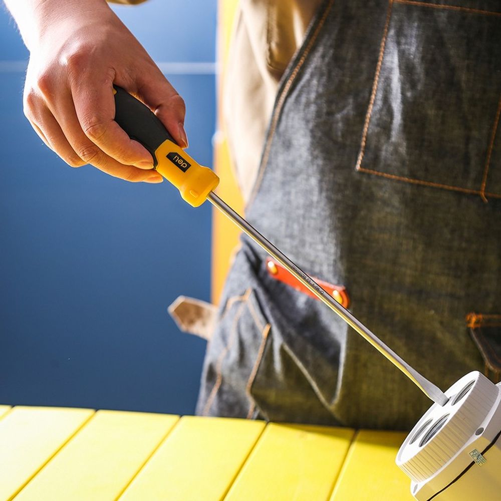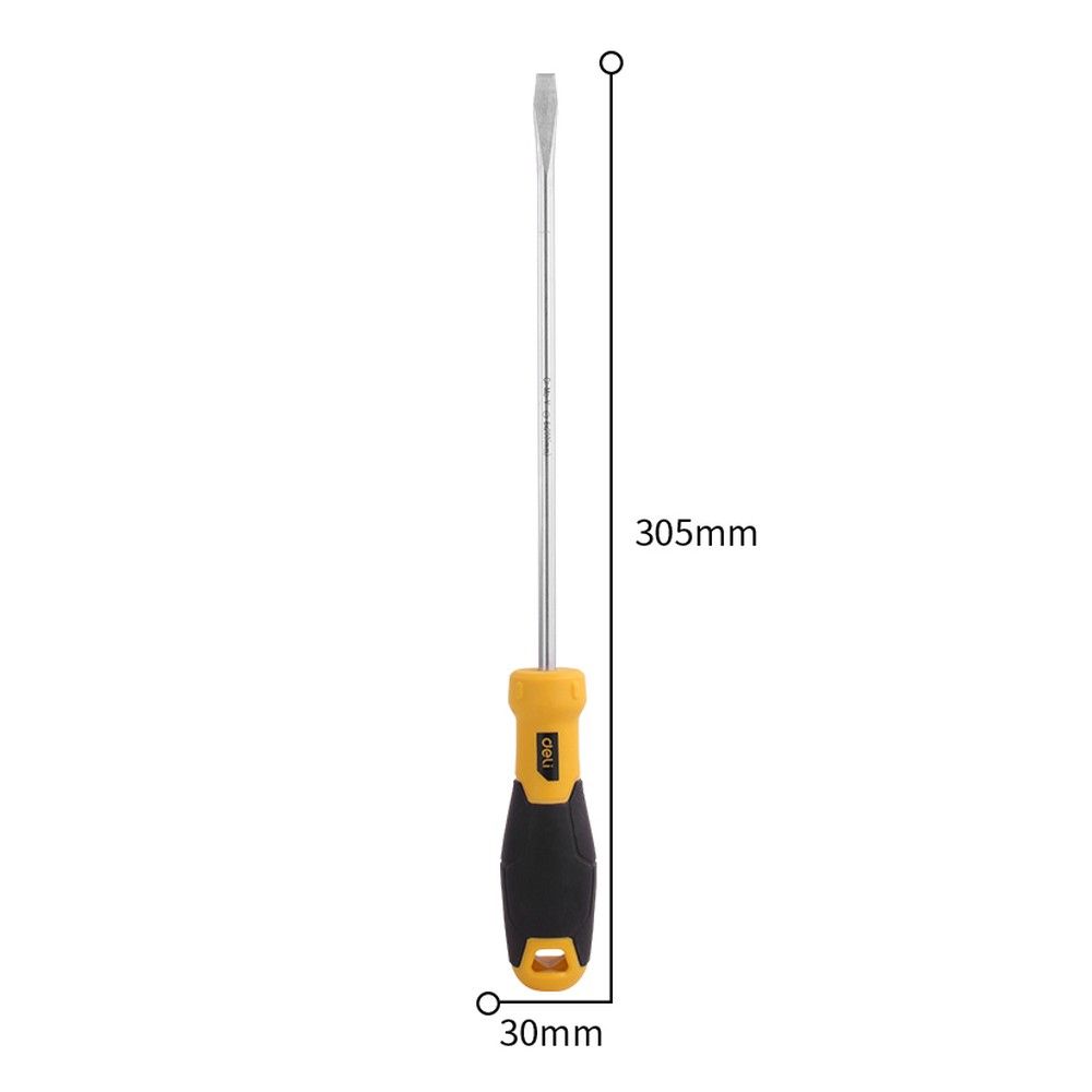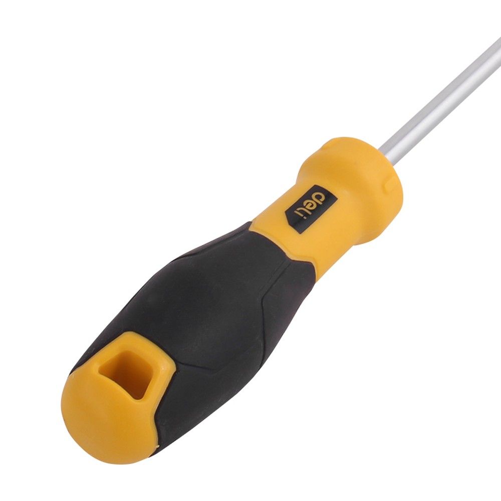 Шлицевая отвертка Deli — это незаменимый инструмент для любого мастера. Она изготовлена из высококачественной стали CR-V, что обеспечивает прочность и долговечность инструмента.