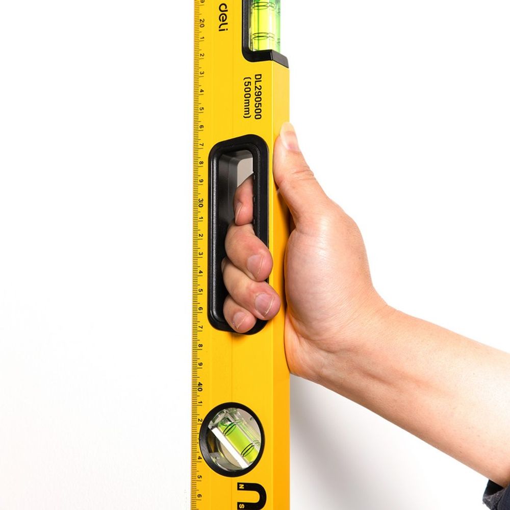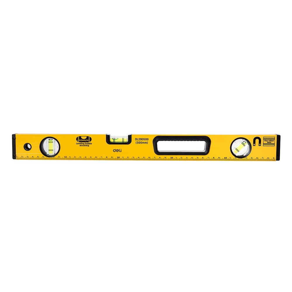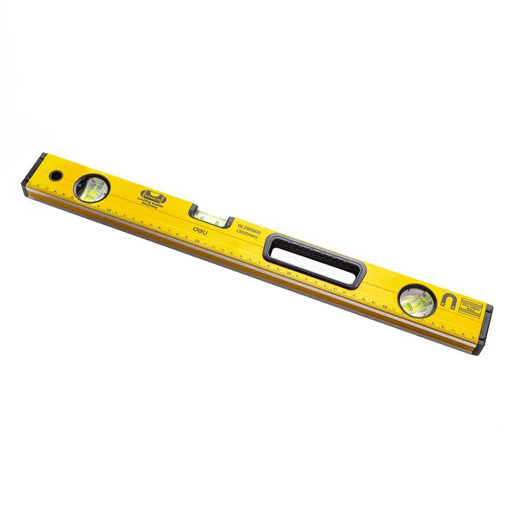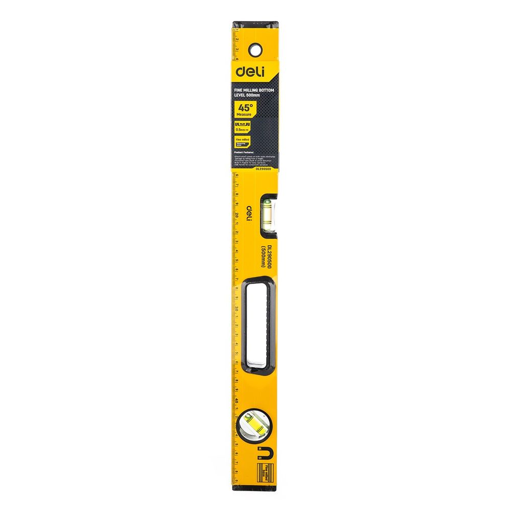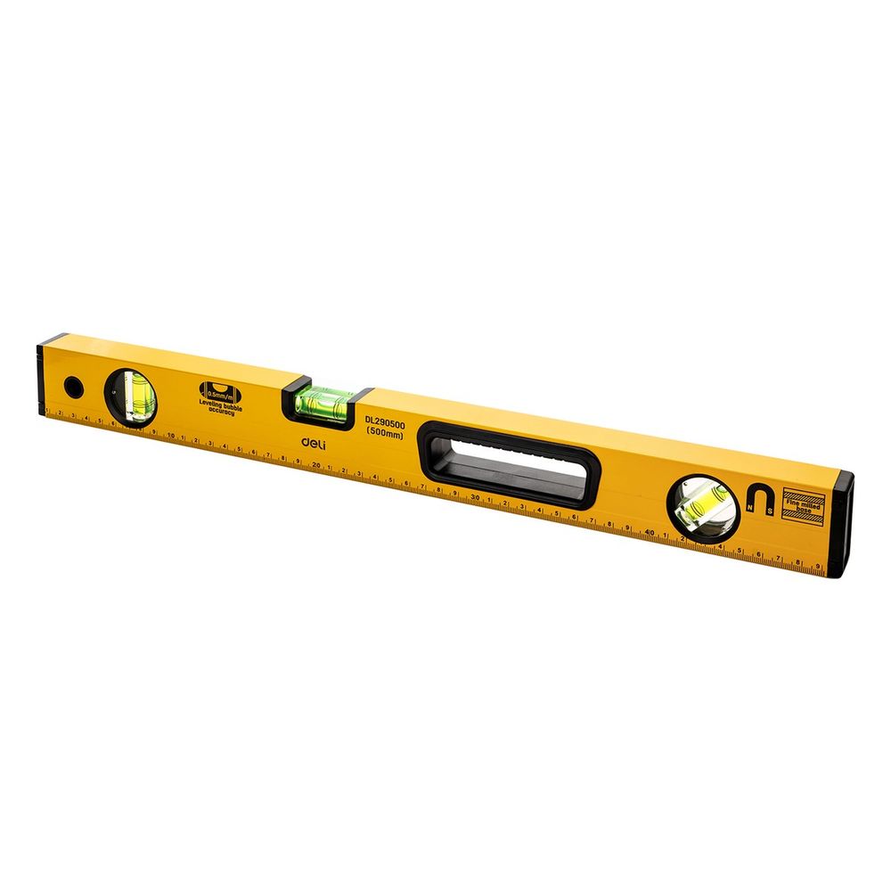 Строительный уровень Deli DL290500 500мм, алюминиевый сплав, мягкие резиновые заглушки, магнит, измерение под углом 45°. Бренд: Deli. Артикул: DL290500. Гарантия: 1 мес.