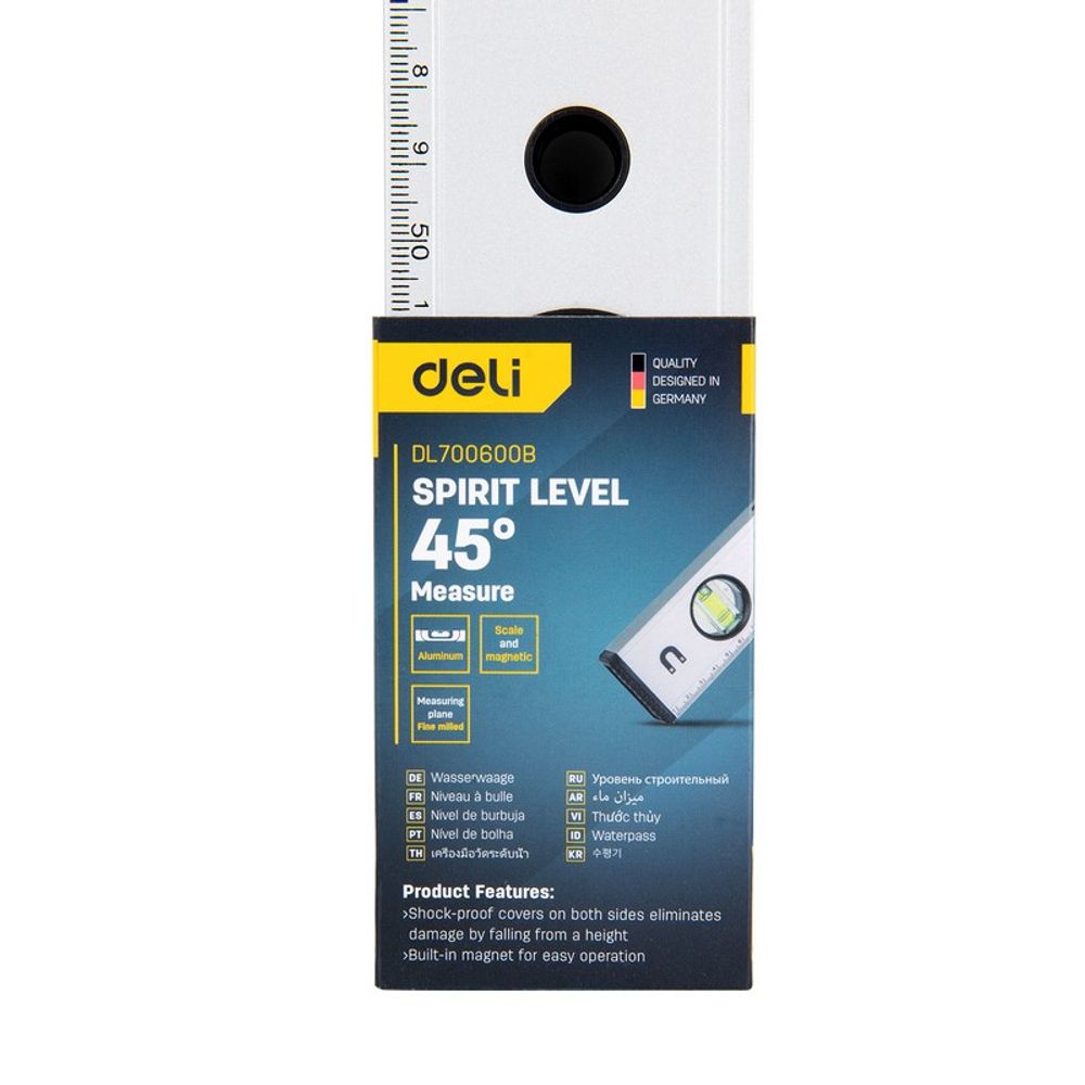 Строительный уровень Deli DL700600B 600мм, алюминиевый сплав, мягкие резиновые заглушки, магнит. Бренд: Deli. Артикул: DL700600B. Гарантия: 1 мес.