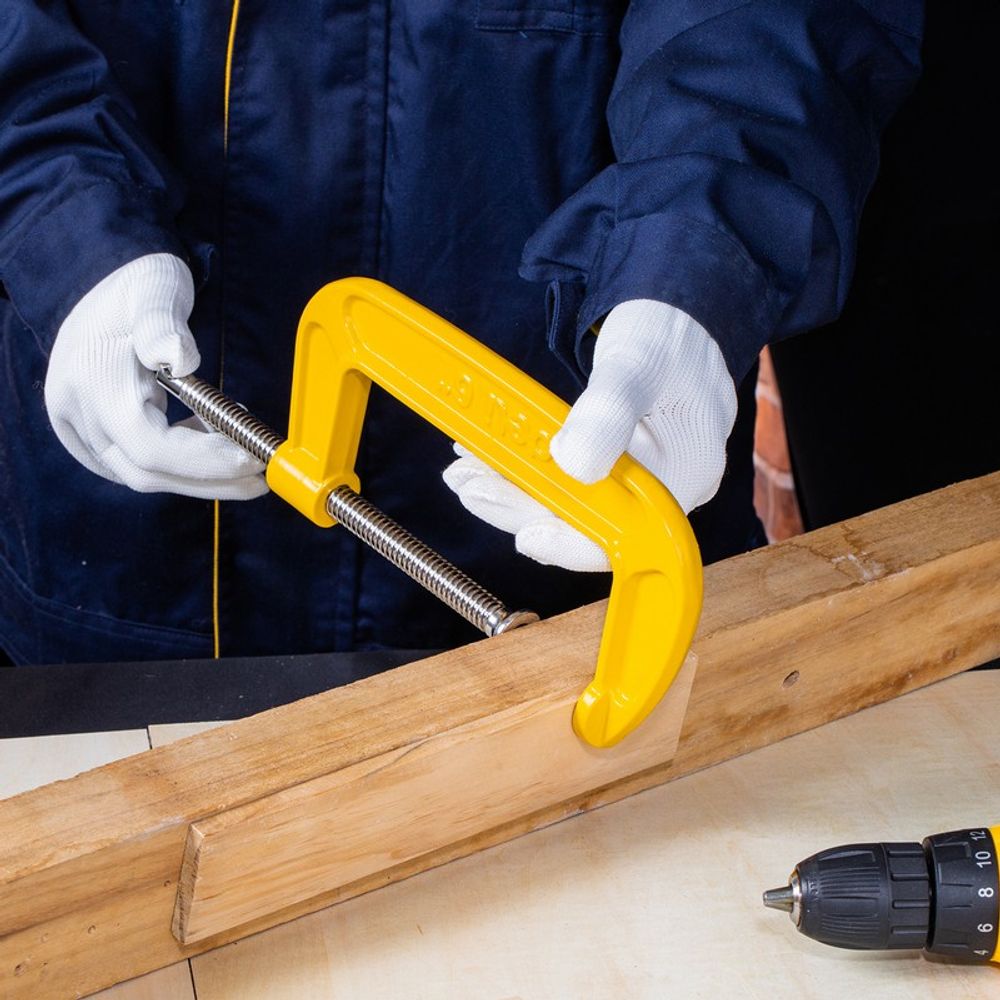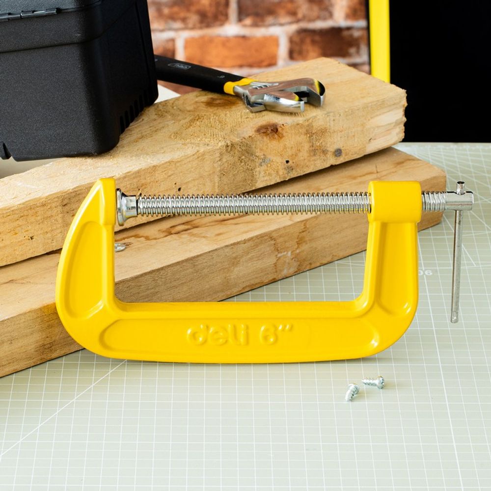 Струбцина Deli — это незаменимый инструмент для столярных и слесарных работ. Она обеспечивает надёжную фиксацию деталей и заготовок, что позволяет выполнять различные операции с высокой точностью и безопасностью.