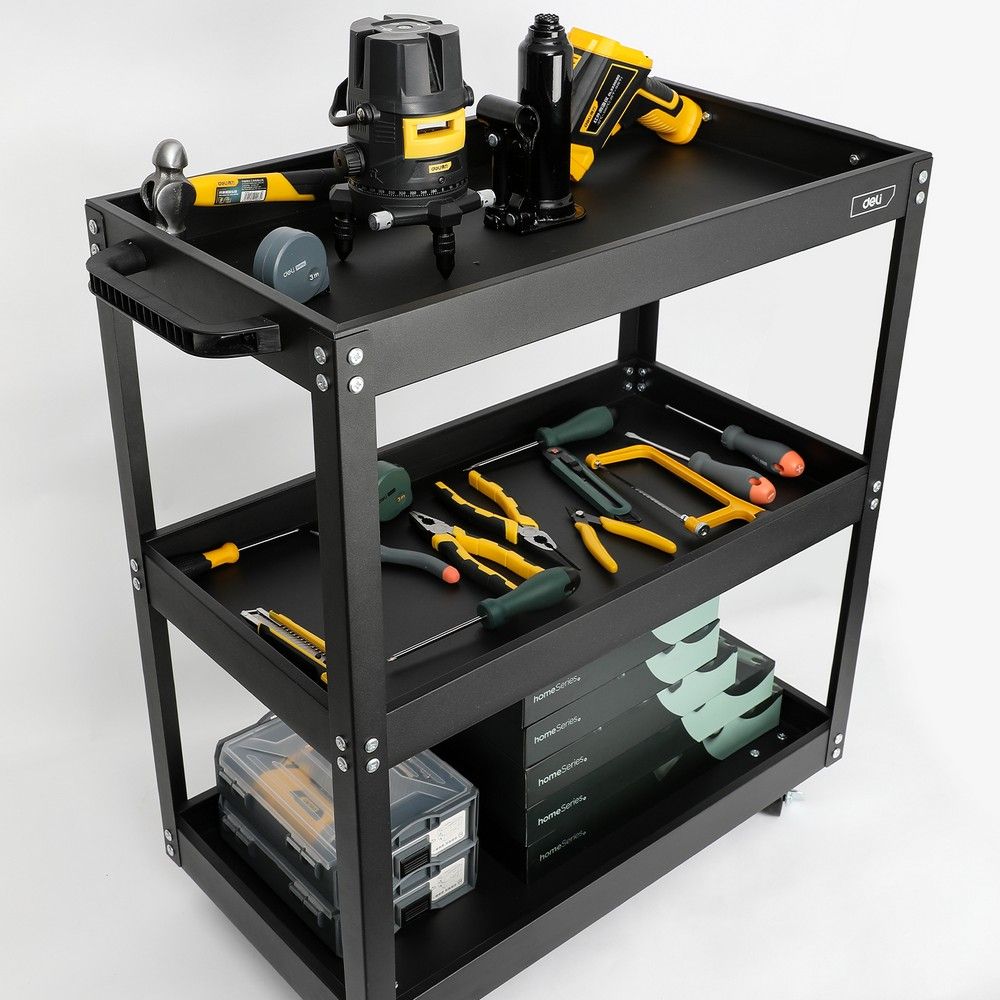 Трёхсекционная тележка на колёсах Deli — это незаменимый помощник для организации рабочего пространства. Она идеально подходит для хранения и транспортировки инструментов и оборудования.