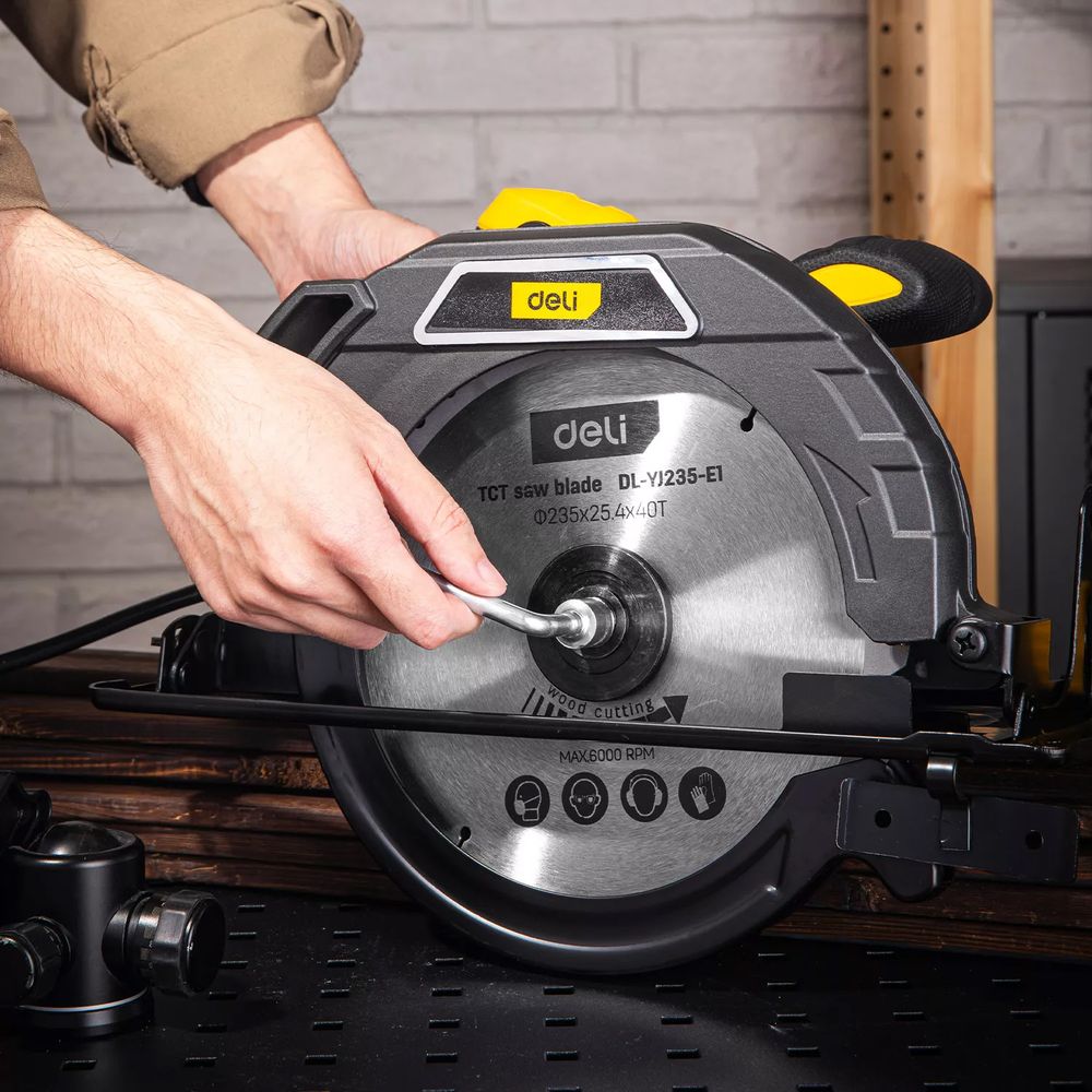 Циркулярная пила Deli DL-YJ235-E1 (2200Вт, 4200об/мин, диаметр диска 235мм, диск в комплекте). Бренд: Deli. Артикул: DL-YJ235-E1. Гарантия: 12 мес.