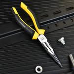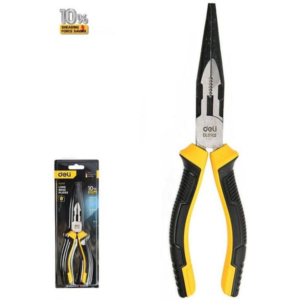 Удлиненные плоскогубцы Deli DL0102 200мм, двухкомпонентная прорезиненная рукоять. Бренд: Deli. Артикул: DL0102. Гарантия: 1 мес.